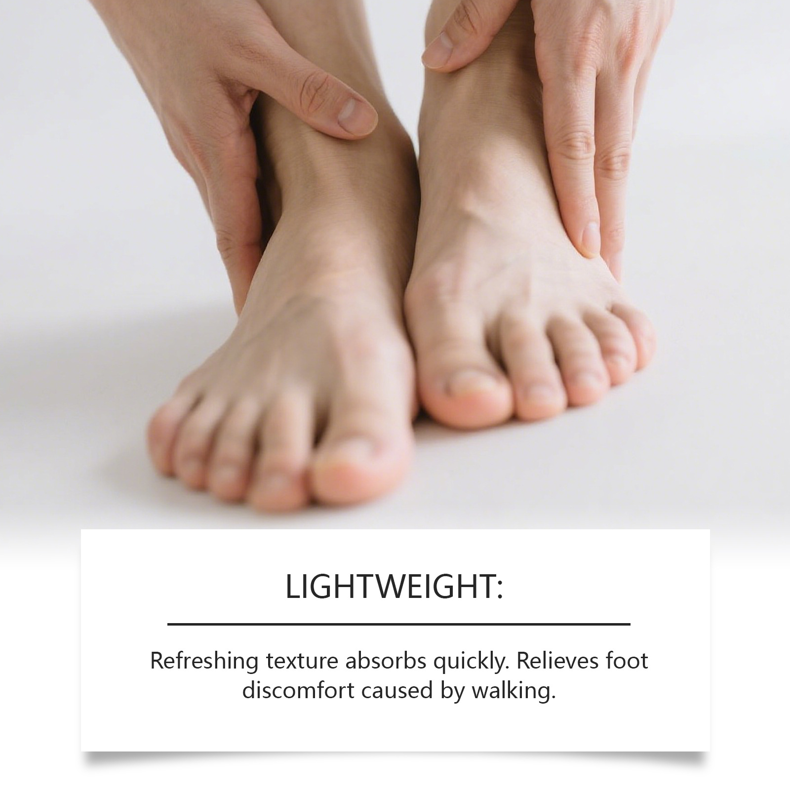 Product Description: This intensive moisturizing foot cream is suitable for everyone and formulated for all skin types. It deeply nourishes your feet, provides a refreshing sensation, and helps relieve discomfort caused by dryness. Its light and fast-absorbing texture makes it an essential part of your daily foot care routine, leaving your feet soft, smooth, and healthy-looking.